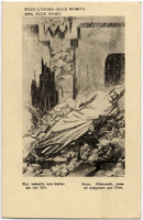 Ecco L'Uomo (Ecce Homo!) 1915. Ecce Homo This postcard is a black and white drawing of a statue of a man which has fallen over into rubble. Text at top left: "Ecco L'Uomo (Ecce Homo!)"; "1915. Ecce Homo". Text at bottom left: "Noi, tedeschi, non temiamo che Dio." Text at bottom right: "Nous, Allemands, nous ne craignons que Dieu." On reverse: "Copyright di Società Editoriale Milanese - Milano/Reproduction interdite"; "Ufficio Rev. Stampa - Milano, 30-3-1917-N.162".