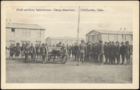 Field artillery instruction-Camp Sherman This postcard is a black and white photo of cannon instruction to a group of soldiers. Text at top: "Field artillery instruction - Camp Sherman, Chillicothe, Ohio". On reverse: "Photo by The Corte-Scope Co., Cleveland, Ohio".