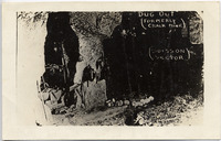 Dug Out (Formerly Chalk Mine) This postcard is a black and white photo of a chalk mine which was converted into a dug out. Text at top right" "'Dug Out' (formerly chalk mine)". Text at right side: "(Soisson Sector)". Postcard is copyrighted 1919 by "Martinson Tiffany". On reverse: blank.