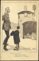 Don't Worry about Me This postcard is a color drawing of a soldier standing with a woman who has grey hair. Text at bottom center: "'Don't worry about me'". Text next to soldier's feet: "Archie Gunn". On reverse: "Illustrated Postal Card & Nov. Co. N.Y."; "Printed in the U.S.A."