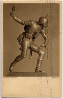 Heinrich Wadere This postcard is a sepia-toned picture of a statue of a soldier. Text beneath picture: "Heinrich Wadere München". On reverse: "Opfertag 1917/Handgranatenwerfer/im Besitze Seiner Majestat des Königs/(Gefertigt von Professor Heinrich Wadere)/in München."; "Rehse & Co. Photographische Kunstanstalt, München."; handwritten message.