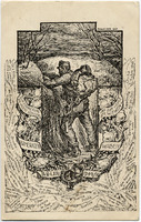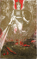 [Warrior and Dragon] This postcard is a picture of a golden warrior walking on a ground of red and brown. On reverse: "Wohlfahrts-Ausschuß/der K. Haupt-und Residenzstadt München/(Fürsorge für die Angehörigen der Kriegsteilnehmer)/Offizielle Postkarte."