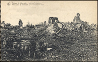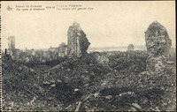 Ruines de Dixmude This postcard is a black and white photo of the ruins of a church. Text at top left: "Ruines de Dixmude 1914-18 Eglise et Panorama."; "The ruins at Dixmude The church and general view." On reverse: "Ern. Thill, Bruxelles." -
