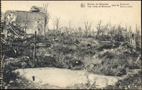 Ruines de Dixmude This postcard is a black and white photo of ruins around a crater caused by a bomb. Text at top left: "Ruines de Dixmude 1914-18 Entonnoir."; "The ruins at Dixmude Bomb-crater." On reverse: "Ern. Thill, Bruxelles." -